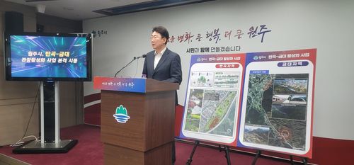 원 시장은 "이 사업은 원주시 관광의 삼각 벨트를 완성하고 체류형 관광도시로 나아가는 획기적인 분기점이 될 것"이라며 "동부권 관광의 주요 축이 될 반곡-금대 관광 활성화 사업, 서부권을 대표하는 소금산 그랜드밸리, 구도심의 역사·문화자원인 강원감영·전통시장까지 관광 라인을 구축해 체류형 관광 시대를 열겠다"고 말했다.