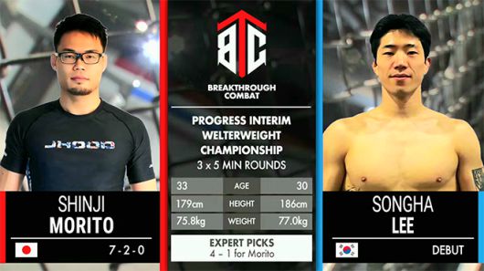 일본 도쿄 유튜브 생방송 격투기대회 Breakthrough Combat 4가 5월14일 열렸다. ‘피에로’ 이송하(31)는 Progress 웰터급(77㎏) 잠정 챔피언 모리토 신지(34)의 타이틀 2차 방어전 상대로 나섰지만, 경기 시작 2분 24초 만에 맨손조르기 기술을 빠져나오지 못하고 항복했다.
