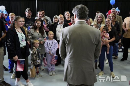 [워싱턴=AP/뉴시스]크리스토퍼 랜도 미 국무 부장관이 지난 12일(현지시각) 난민 자격으로 미국에 도착한 남아프리카공화국 백인들을 맞이하고 있다. 남아공 백인을 난민으로 받아들이는 정책은 도널드 트럼프 미 대통령의 숙원이었다. 2025.5.15. |