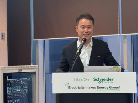 권지웅 슈나이더 일렉트릭 코리아 대표가 15일 서울 코엑스에서 기자간담회를 진행하고 있다. [사진=이성진 기자] |