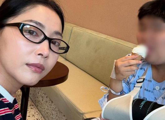 함께 공개된 사진에는 팔 수술 후 회복 중인 아들과 오윤아의 모습이 담겼다.