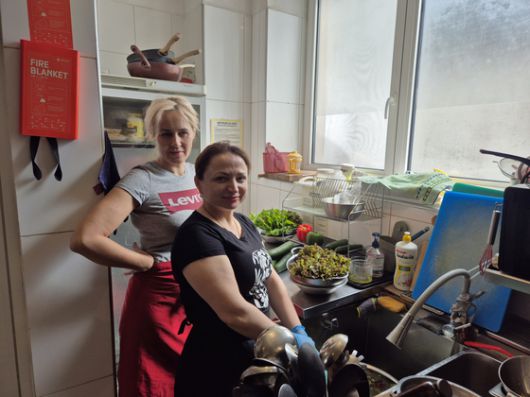 타냐 코르부착(41)과 이리나 니블리차(46)는 15일(현지시간) 폴란드 바르샤바의 한식당 하루의 부엌을 책임지고 있다. 타냐는 이곳에서 2년 가까이일한 베테랑, 이리나는 한 달된 새내기로 경력은 다르지만 둘 다 우크라이나전으로 한식을 처음 만났다.