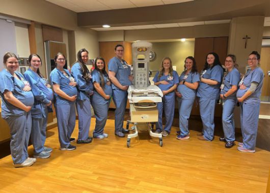 병원은 간호사 주간(5월 6일~12일)을 맞아 이 소식을 공유했다. 14명의 간호사 중 첫 번째 출산은 5월 말이 예정이며, 마지막 14번째 출산은 오는 10월에 예정돼 있다. HSHS St. Vincent Hospital |