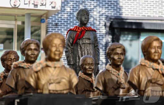 17일 경기 광주시 퇴촌면 나눔의집에 위안부 피해자 할머니들의 흉상이 세워져 있다. 지난 16일 일본군 위안부 피해자인 길옥순 할머니의 별세로 여가부에 등록된 일본군 위안부 피해자 240명 중 생존자는 7명으로 줄었다. 2025.2.17/뉴스1 ⓒ News1 김도우 기자 |