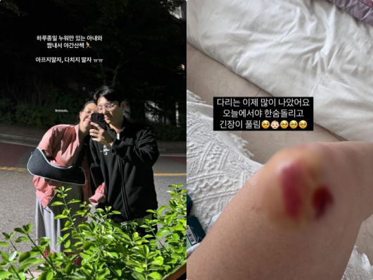 김지혜는 14일 자신의 SNS에 "다리는 이제 많이 나았어요. 오늘에서야 한숨 돌리고 긴장이 풀림"이라는 글과 함께 멍과 상처가 선명히 남은 다리 사진을 공개했다.