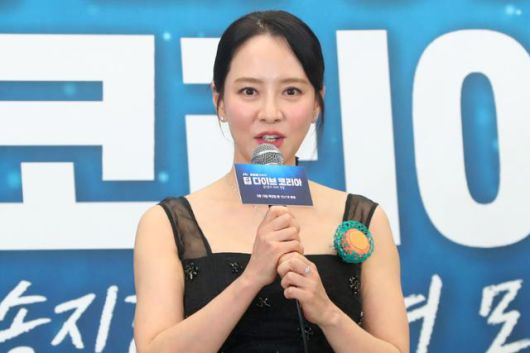=배우 송지효가 15일 오후 서울 마포구 스탠포드호텔에서 열린 JTBCXBBC '딥다이브 코리아' 송지효의 해녀 모험 제작발표회에서 인사말을 하고 있다. 뉴시스 |