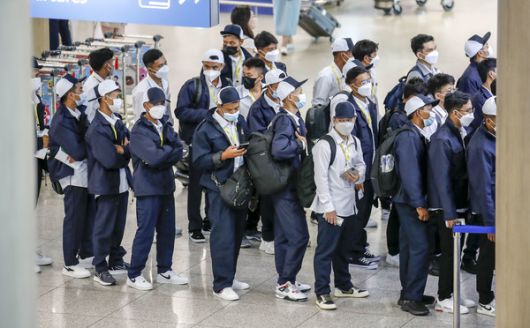 미얀마에서 온 외국인근로자들이 인천국제공항에서 입국을 위한 수속을 밟고 있다. [뉴시스] |