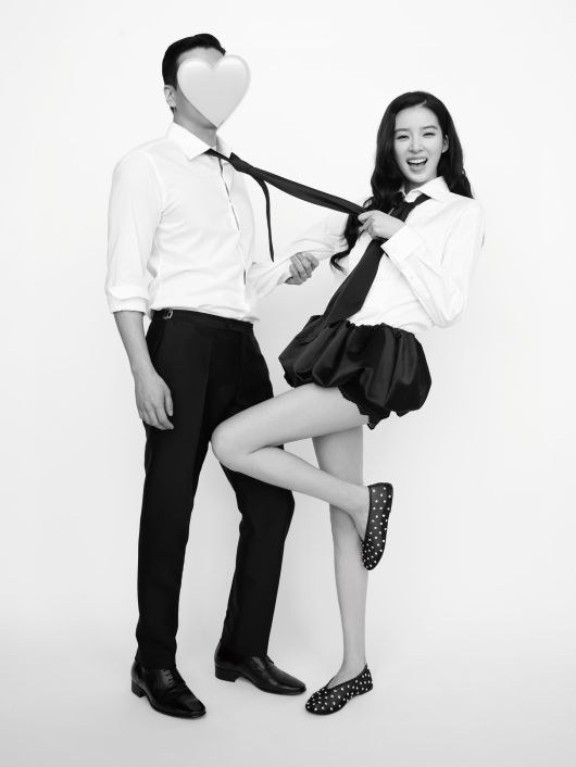화보 속 아이린은 예비 신랑과 다양한 의상을 차려입고 환하게 웃으며 포즈를 취하고 있다.