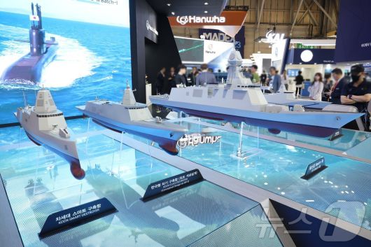 한국형 차기 구축함(KDDX) 등 최첨단 수상함 함정모형들(한화오션 제공) |