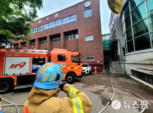 [성남=뉴스핌] 정종일 기자 = 경기 성남시 분당구 분당도 소재 대진고등학교에서 오후 1시 42분쯤 화재가 발생했다.