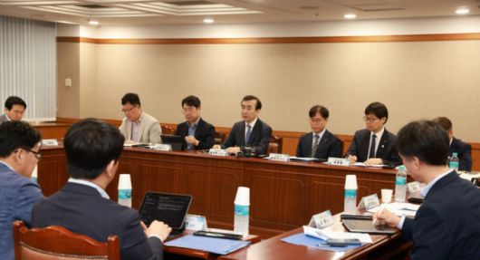 권대영 금융위원회 사무처장(사진 가운데)이 15일 오후 서울 여의도 금융보안원 교육센터에서금융위원회, 금융감독원, 금융보안원, 금융결제원, 한국거래소 등 금융 보안 유관기관들과 함께 개최한 금융보안 간담회를 주재했다./사진=금융위 |