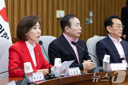 나경원 국민의힘 이재명 방탄 독재 저지 투쟁위원회 위원장이 15일 오후 서울 여의도 국회에서 열린 국민의힘 이재명 방탄 독재 저지 투쟁위원회 회의에서 발언을 하고 있다. 2025.5.15/뉴스1 ⓒ News1 이재명 기자 |