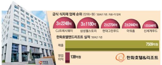식자재·급식 업계는 한화 계열사가 된 아워홈이 매출 1·2위인 CJ프레시웨이와 삼성웰스토리를 따라잡을 수 있을지 예의 주시하고 있다.