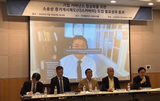 한국기업거버넌스포럼은 15일 서울 여의도 한국경제인협회에서 '기업거버넌스 정상화를 위한 소송상 증거개시제도(디스커버리) 도입 필요성과 효과'를 주제로 세미나를 열었다.