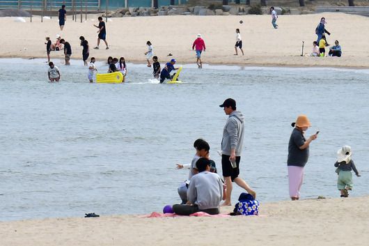 지난해 4월 27일 오후 경북 포항시 북구 영일대해수욕장에서 청소년들이 바다로 뛰어들어 즐거운 시간을 보내고 있다. /뉴스1 |