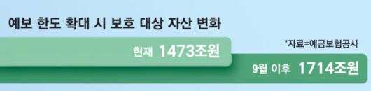 ▶예보가 5000만원까지 보장하던 예·적금 등 상품 규모는 지난해 말 기준 현재 1473조원, 계좌 3억9028만개다. 9월에 한도가 1억원까지 오르면 보호 대상 상품 규모는 1714조원, 계좌 3억9561만개까지 늘어날 전망이다. 예보가 보장하는 수혜 계좌만 533만개 늘어나는 것이다.