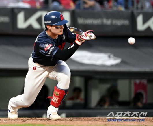 15일 광주KIA챔피언스필드에서 열린 롯데와 KIA의 경기, 3회초 무사 1,2루 롯데 윤동희가 번트를 시도하고 있다. 광주=허상욱 기자wook@sportschosun.com/2025.05.15/