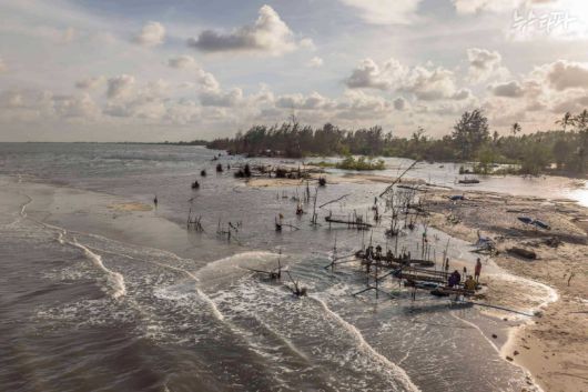 이 마을의 어부 에코 산자야는 어두운 물 속을 바라보며 "예전에는 이곳 물이 맑았다”고 회상했다. 20대 초반의 그는 맹그로브 숲에 놓인 뜬다리(부잔교)로 기자를 안내했다. 뜬다리 위엔 물을 퍼올리는 펌핑 기계가 덩그러니 놓여 있었다. 맹그로브 숲을 파괴하는 이 기계는 주석 채굴을 위해 설치됐다. 에코 산자야는 “환경에 막대한 피해가 발생했다”며 "물고기, 새우, 게 등 우리가 잡는 모든 해산물에서 기름 냄새가 난다”고 말했다.