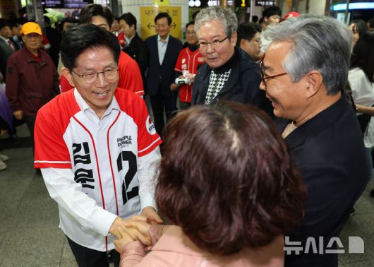 김 후보는 이후 신도림역에서 첫 출근길 거리 인사 유세에 나섰다. '김문수'와 '기호 2번'이 적힌 빨간색 티셔츠를 입고 20여 분간 시민들과 인사를 나눴다.