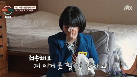 탈북 아내는 이호선이 등장하자 "죄송하다. 저 이거 못할 거 같다"며 눈물을 흘렸다.