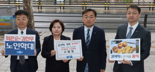 조국혁신당 끝까지판다 특별위원회 신장식·정춘생 공동위원장이 1일 서울 서대문구 경찰청에서 윤석열 전 대통령 처가가 운영하는 한 요양원에서의 노인 학대와 부실 급식 의혹에 대한 고발장을 접수하기 위해 민원실로 향하고 있다. 오른쪽 부터 박병언 총괄간사, 정춘생·신장식 공동위원장, 서상범 위원. 연합뉴스 |