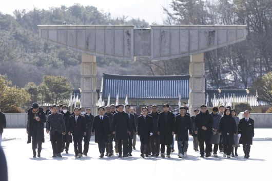 지난 2월 광주 5·18민주묘지를 참배하기 위해 일행과 함께 이동하는 김동연 경기도지사. 경기도 제공