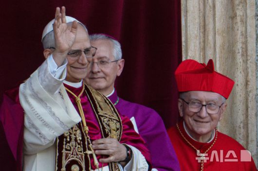 [바티칸=AP/뉴시스] 8일(현지 시간) 제267대 교황으로 선출된 레오 14세(로버트 프랜시스 프레보스트)가 선출 직후 바티칸 성베드로 대성당 중앙 '강복의 발코니'에서 인사하고 있다. 2025.05.09. |