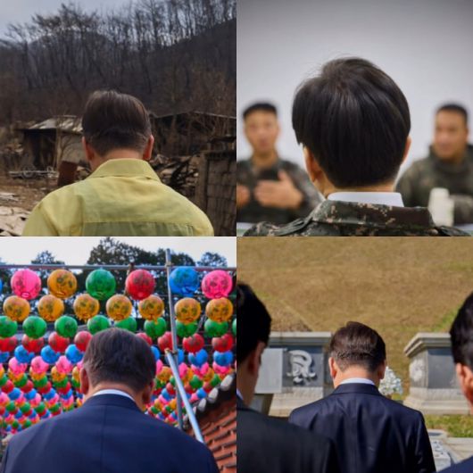 이 후보의 '얼굴'이 없는 사진도 게재된다. 12·3 계엄 후인 지난 1월1일 시민의 손을 맞잡는 이 후보 손 사진이나 지난 3월28일 경북 지역 산불 피해 현장을 바라보는 이 후보의 뒷모습 등이다. 한 공연기획업체 대표는 SNS를 통해 "사진에 이야기를 억지스럽지 않게 잘 담아 때로는 작품 사진을 보는 듯 즐거움까지 생긴다"며 "목소리가 갈라져라, 이 후보가 외치는 공약보다 한 장의 사진이 그를 한 번 더 보게 한다"고 썼다.