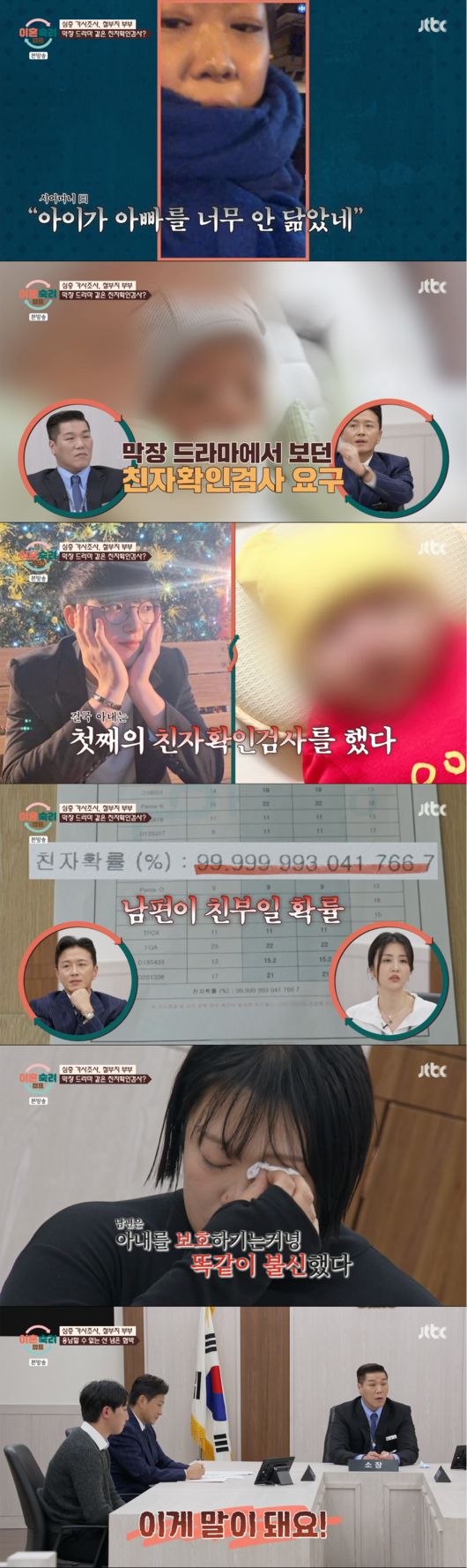 남편은 시댁과의 문제도 있었다고 밝혔다. 남편의 어머니는 찬지확인검사를 강요했다고. 결국 아내는 첫째의 친자확인검사를 했고, 남편은 친부가 맞았다. 이 사건은 아내의 마음에 커다란 상처를 안겼다.