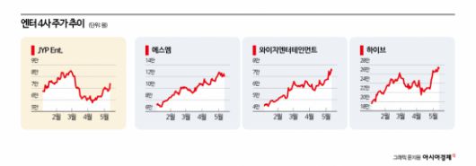 국내 대표 엔터주들의 숨 고르기 속 JYP엔터테인먼트(JYP Ent.)가 홀로 급등하면서 그 배경에 이목이 쏠리고 있다.