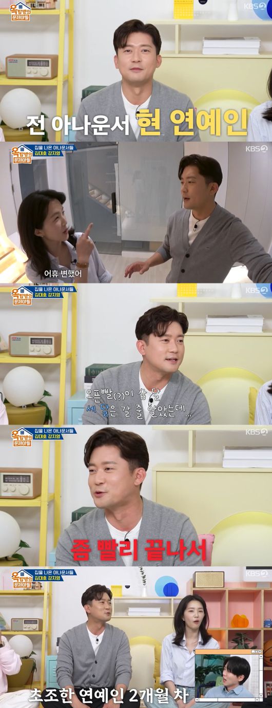 이에 김대호는 "너는 이렇게까지 할 필요 없다. 차근차근해라. 급하게 생각할 필요 없다"며 조언했지만 정작 자신은 등장부터 신인 개그맨처럼 조급한 모습을 보였다. 그는 "오픈빨이 세 달은 갈 줄 알았는데 너무 빨리 끝난 것 같다. 쫓긴다"라며 초조함을 드러냈다.