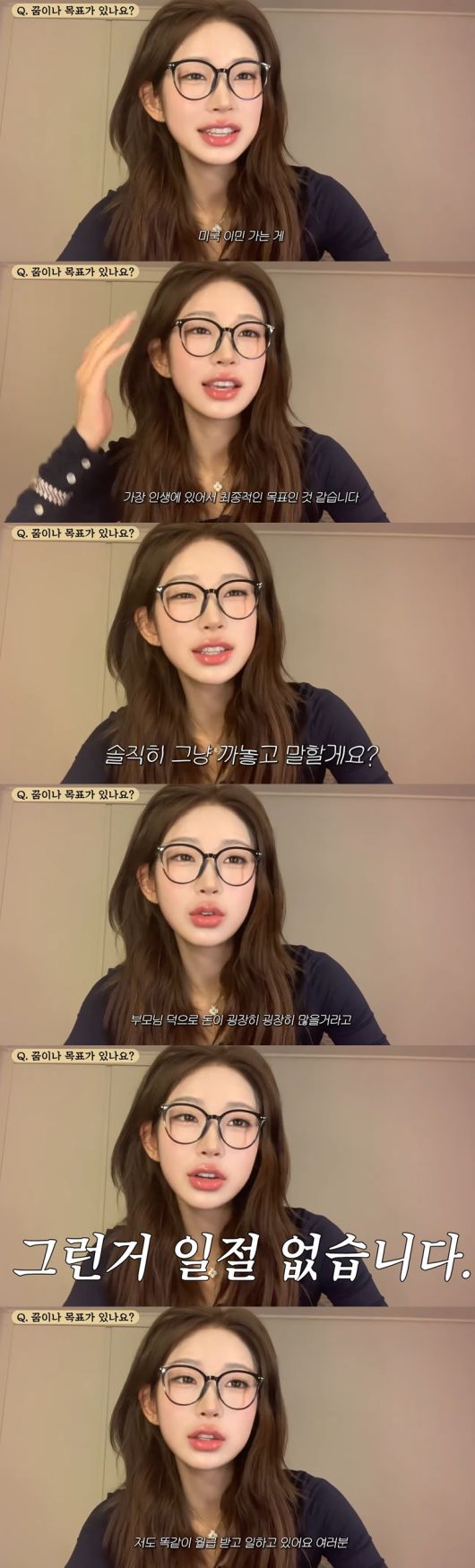 이날 최준희는 Q&A 시간을 통해 다양한 질문에 답하며 진솔한 시간을 가졌다. 첫 번째로는 꿈이나 목표가 있냐는 질문을 받았다.