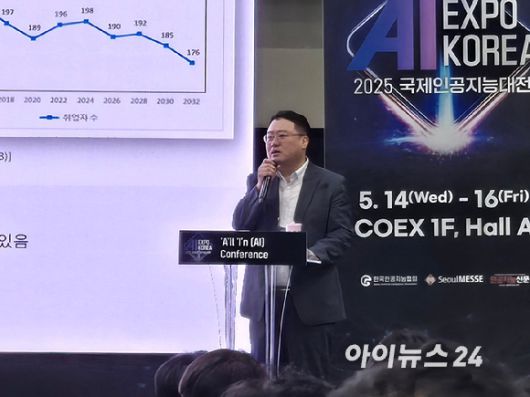 최재식 카이스트 교수 겸 인이지 대표가 15일 서울 강남구 코엑스에서 열린 '국제인공지능대전' 세미나에서 발언하고 있다. [사진=최란 기자] |
