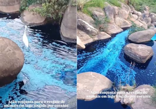 브라질 상파울루의 한 호수에서 염료가 유출되는 사고가 발생해 일대 동물과 물고기가 파란 물을 뒤집어썼다.