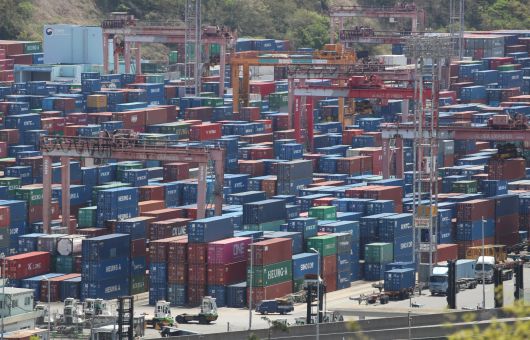 부산항 신선대부두 야적장에 컨테이너가 가득 쌓여 있다. /뉴스1 |