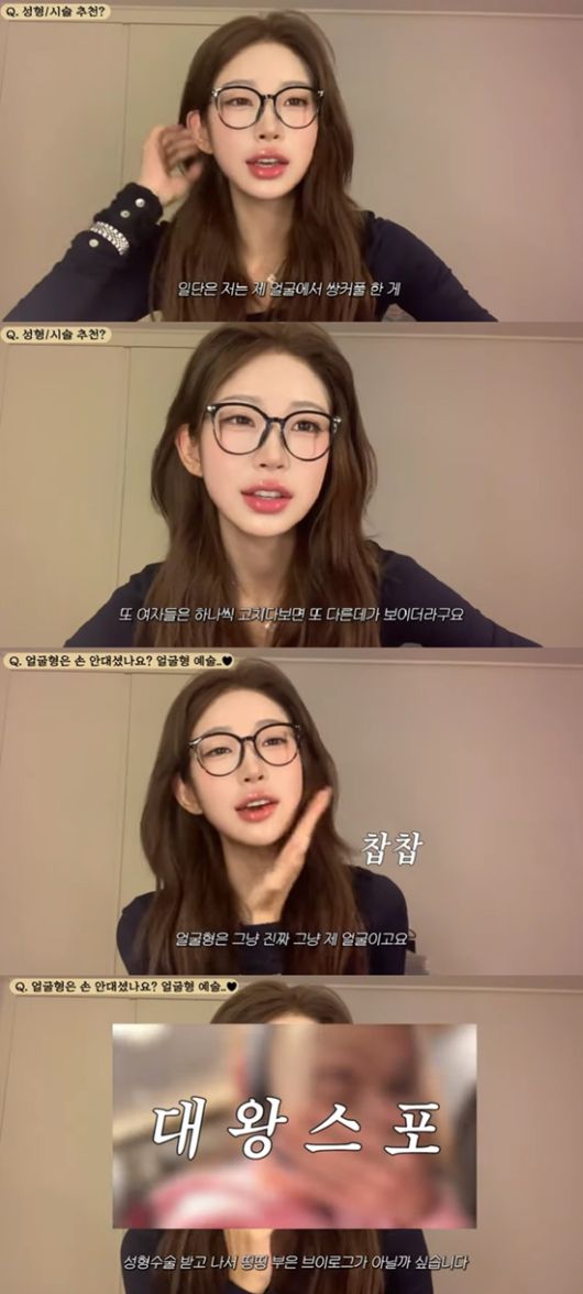 이어 최준희는 "얼굴형은 따로 손 안 댄 거냐. 얼굴형이 예술"이라는 한 팬의 질문에 "얼굴형은 진짜 제 거"라면서 "저는 제 얼굴형이 마음에 안 든다. 살짝 스포를 드리자면 다음 브이로그가 아마도 성형수술 받고 띵띵 부은 브이로그가 아닐까 싶다. 수술 날짜 잡아놨다. 뼈는 안 건드릴 거다"라고 예고했다.