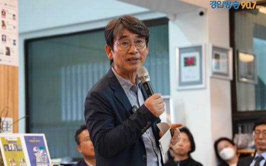 유시민 작가가 지난 13일 '대통령 노무현을 말하다' 강연에서 6.3 대선 예상 득표율을 언급해 주목받고 있다. 경인방송 유튜브 |