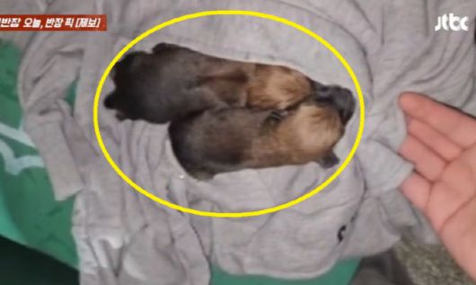 15일 서울 강북구 한 의류수거함에 버려져 있던 강아지들. (사진=JTBC 사건반장 캡처) |