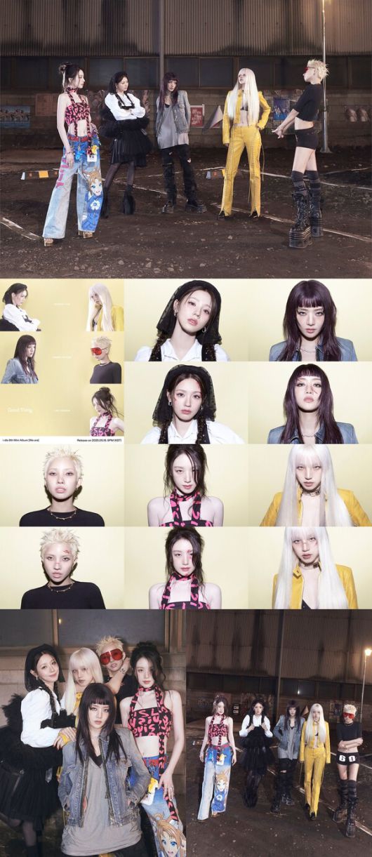 이날 공개된 콘셉트 이미지에는 'Good Thing' 숏폼 속 스타일리시한 아이들 모습이 그대로 담겼다. 특히 어두운 밤의 주차장을 배경으로 서로를 무심히 바라보거나 무표정한 얼굴로 함께 걸어오는 단체 사진은 한층 트렌디하고 시크한 분위기를 전했다.