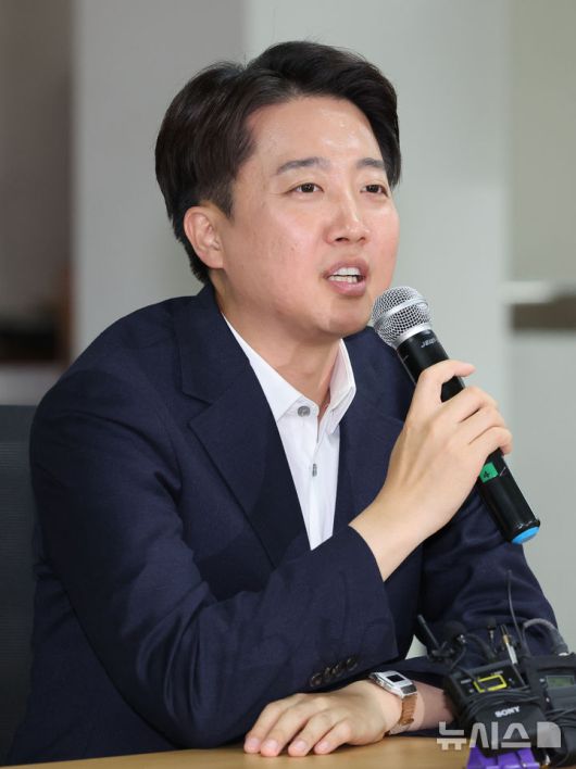 [서울=뉴시스] 황준선 기자 = 이준석 개혁신당 대통령선거 후보가 15일 서울 중구의 한 모임공간에서 열린 대한초등교사협회 주최 ‘서이초 사건과 같은 비극이 다시 일어나지 않기를’ 정책 간담회에 참석해 축사를 하고 있다. 2025.05.15. hwang@newsis.com
