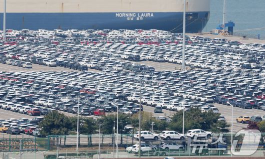 경기 평택시 포승읍 평택항 자동차전용부두에 수출용 차량들이 세워져 있는 모습. ⓒ News1 김영운 기자 |