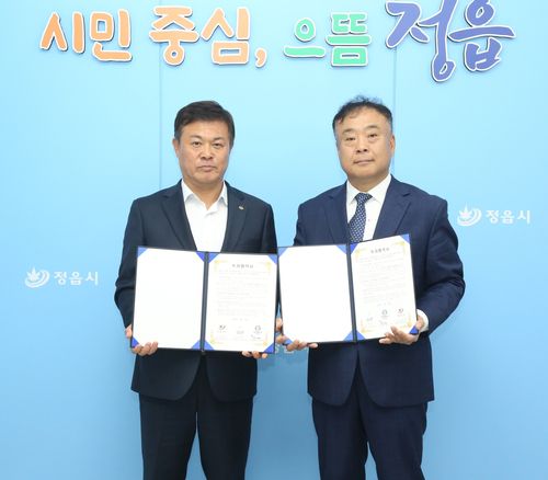 (정읍=연합뉴스) 김동철 기자 = 전북 정읍시는 16일 시청에서 펫푸드기업인 위드이엘과 공장 신설을 뼈대로 한 투자 협약식을 가졌다.