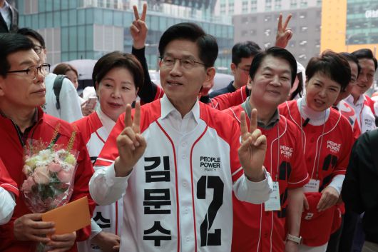 한편 지동시장 방문 직전 김 후보는 판교역을 찾아 이날도 출근길 시민들을 만났다. 이날 일부 시민들은 김 후보에게 편지와 꽃을 주거나 “나라를 구해달라.” “부정선거를 막아달라”며 응원하기도 했다. 반면 김 후보의 악수를 거부하는 시민도 있었다.