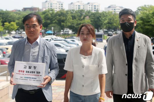 최재관 더불어민주당 여주양평지역위원장(왼쪽부터)과 여현정, 최영보 양평군의원이 1일 오전 경기 정부과천청사에서 양평고속도로 관련 원희룡 국토교통부 장관에 대한 고발장을 제출하기 위해 발걸음을 옮기고 있다. 2023.8.1/뉴스1 ⓒ News1 황기선 기자 |