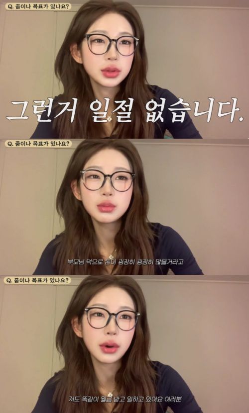 그동안 최준희는 고 최진실의 유산을 상속받은 금수저로, 호화로운 생활을 누렸다는 이미지를 가졌다. 그러나 그는 "진짜 솔직하게 까놓고 말하겠다. 많은 분들이 오해하고 착각하고 계시는데, 내가 부모님 덕에 돈이 굉장히 많을 거라고 착각을 하시더라"며 "그런 거 일절 없다. 힘들게 열심히 일하고 똑같이 월급 받으면서 일한다"고 해명했다.