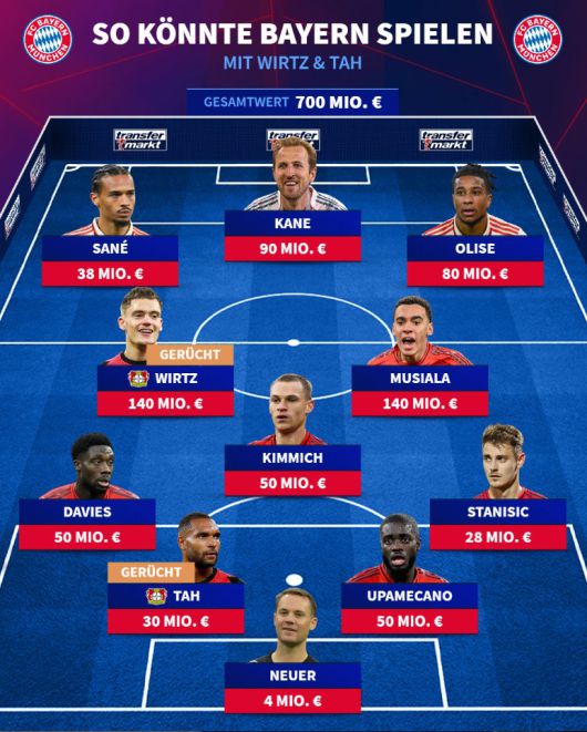 매체가 예상한 새로운 뮌헨 베스트 11에 추가된 선수는 비르츠와 타이다. 이때 타가 합류하면서 올시즌 뮌헨 주전 센터백으로 활약한 김민재의 이름이 사라졌다.