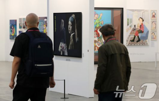 (대구=뉴스1) 공정식 기자 = 16일 대구 북구 엑스코에서 열린 '아트페어 대구 2025'를 찾은 관람객이 작품을 감상하고 있다. 오는 18일까지 국내외 110여 개 갤러리가 참여해 5000여 점의 작품을 전시한다. 2025.5.16/뉴스1jsgong@news1.krCopyright ⓒ 뉴스1. All rights reserved. 무단 전재 및 재배포, AI학습 이용 금지.