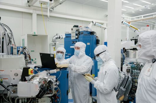 어플라이드 머티어리얼즈의 반도체 장비가 설치된 팹(제조 공장)에서 엔지니어들이 장비를 체크하고 있다./어플라이드 머티어리얼즈 제공 |