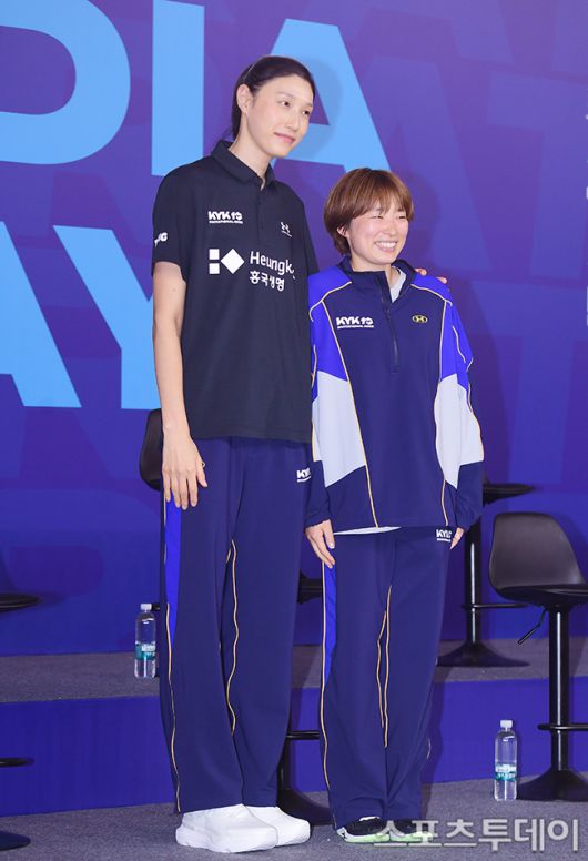 [인천=스포츠투데이 권광일 기자] 김연경, 야마기시 아카네가 16일 오후 인천 삼산월드체육관 보조경기장에서 열린 'KYK 인비테이셔널 2025' 미디어데이 행사에 참석해 포즈를 취하고 있다. 2025.05.16. [스포츠투데이 권광일 기자 sports@stoo.com]