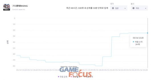 컴투스가 올해 3월 일본 현지에 선보인 신작 리얼 야구 게임 '프로야구 라이징(プロ野球RISING)'이 일본 애플 앱스토어 매출 24위를 기록했다. 이는 27위를 기록하고 있는 日 최고 인기 야구게임 코나미의 '프로야구 스피리츠 A'를 제친 것으로, 터줏대감이자 네임밸류가 높은 게임을 넘어서는 성과를 내 향후 현지 시장 공략에 청신호가 켜졌다는 반응이 나온다.